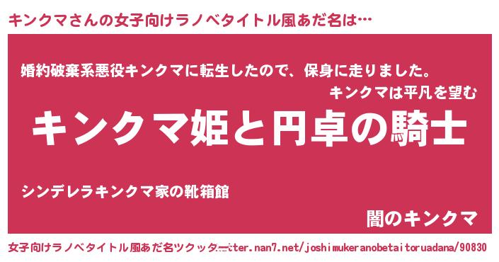 | 男性向けラノベタイトル風あだ名 | 『キンクマアートオンライン』 |