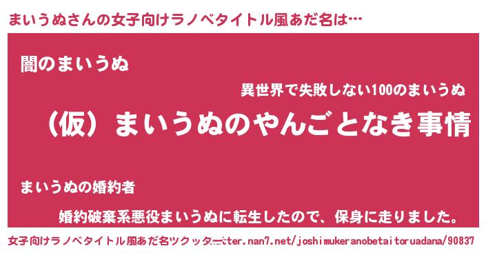 | 男性向けラノベタイトル風あだ名 | 『まいうぬの憂鬱』『マイウヌスレイヤー』 |