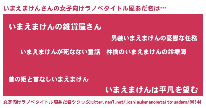 | 男性向けラノベタイトル風あだ名 | 『魔弾の王といまえまけん』 |