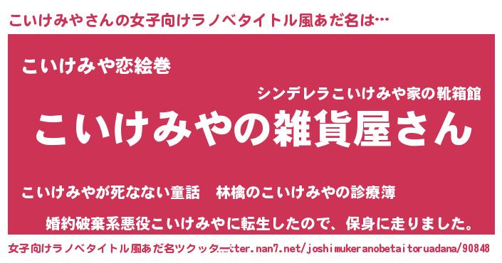 | 男性向けラノベタイトル風あだ名 | 『やはりこいけみやの青春ラブコメはまちがっている 』 |