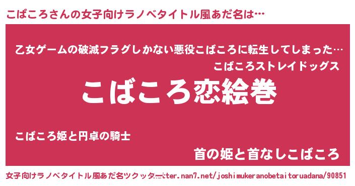 | 男性向けラノベタイトル風あだ名 | 『ノーゲーム・ノーコバコロ』 |