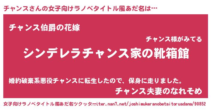 | 男性向けラノベタイトル風あだ名 | 『冴えないチャンスの育てかた』 |