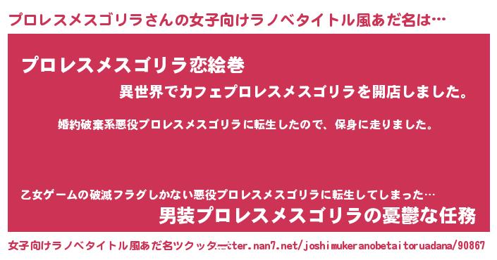 | 男性向けラノベタイトル風あだ名 | 『転生したらプロレスメスゴリラだった件』 |