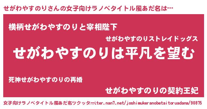 | 伝説のあだ名 | 『孤高の遊び人せがわやすのり』 |