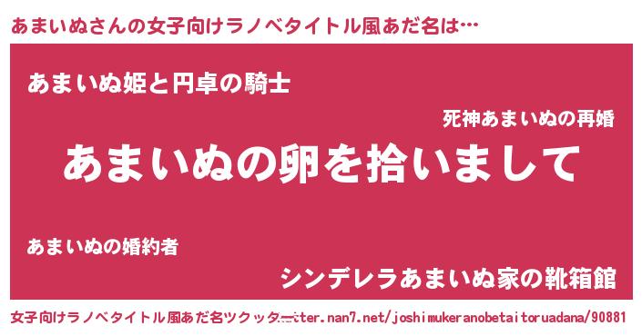 | 男性向けラノベタイトル風あだ名 | 『ダンジョンにあまいぬを求めるのは間違っているだろうか』 |
