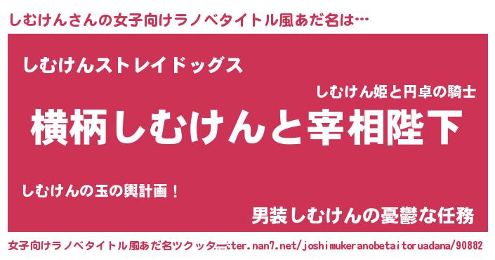 | 男性向けラノベタイトル風あだ名 | 『しむけんに滅ぼされるだけの簡単なお仕事です』 |