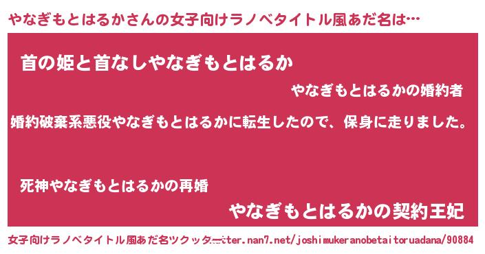 | 男性向けラノベタイトル風あだ名 | 『転生したらやなぎもとはるかだった件』 |