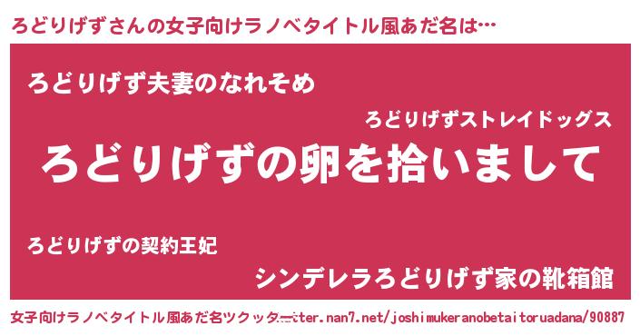 | 男性向けラノベタイトル風あだ名 | 『ろどりげずの嫁は女の子じゃないと思った?』 |