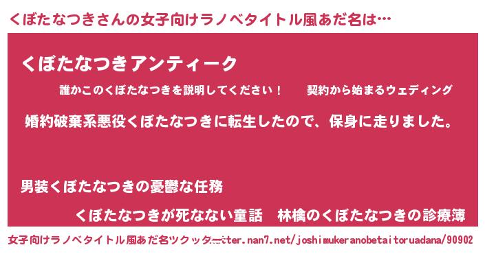 | 男性向けラノベタイトル風あだ名 | 『転生したらくぼたなつきだった件』 |
