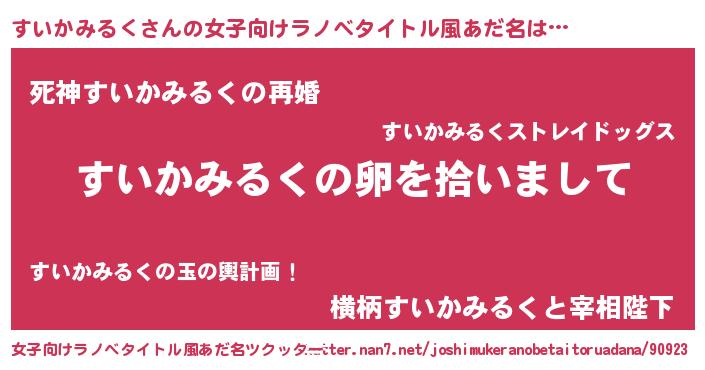 | 男性向けラノベタイトル風あだ名 | 『ダンジョンにすいかみるくを求めるのは間違っているだろうか』 |