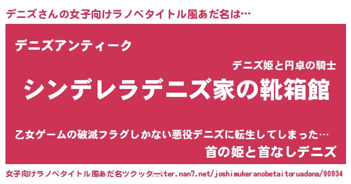 | 男性向けラノベタイトル風あだ名 | 『冴えないデニズの育てかた』 |