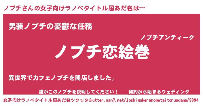 | 男性向けラノベタイトル風あだ名 | 『ノーゲーム・ノーノブチ』 |