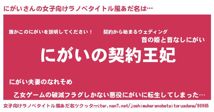 | 胡散臭い通販商品みたいなあだ名 | 『来世でも幸せになれる水素水…その名も「にがい」』 |
