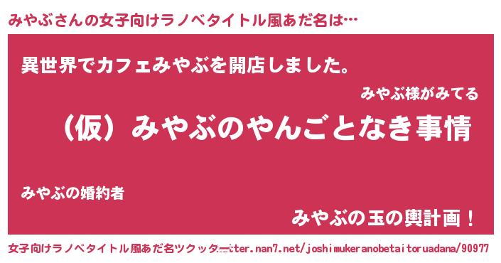 | 男性向けラノベタイトル風あだ名 | 『みやぶの憂鬱』 |