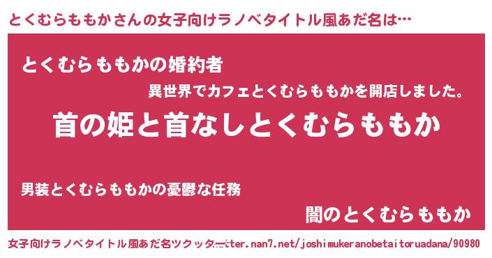 | 男性向けラノベタイトル風あだ名 | 『はたらくとくむらももかさま!』 |