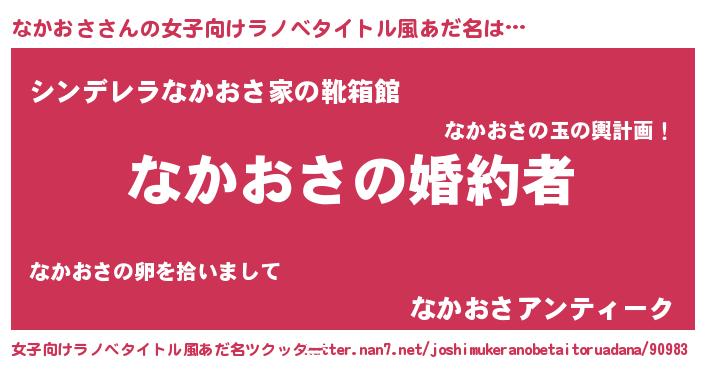 | 男性向けラノベタイトル風あだ名 | 『うちの娘の為ならば、俺はもしかしたらなかおさも倒せるかもしれない。』 |