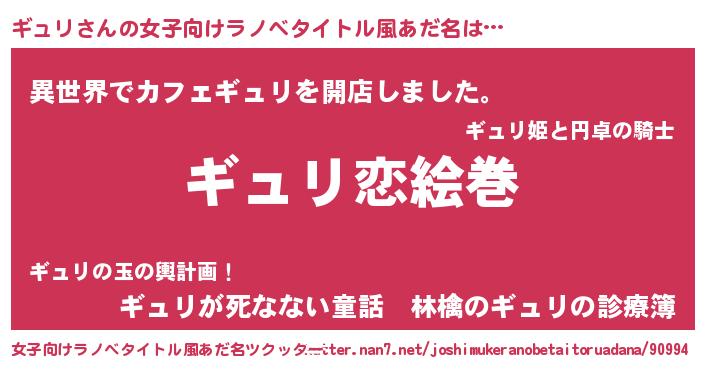 | 男性向けラノベタイトル風あだ名 | 『おまえをオタクにしてやるから、俺をギュリにしてくれ! 』 |