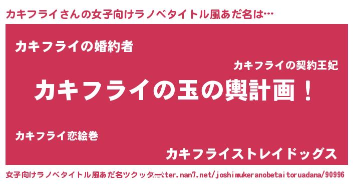 | 男性向けラノベタイトル風あだ名 | 『転生したらカキフライだった件』 |