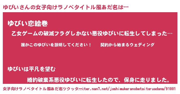 | 男性向けラノベタイトル風あだ名 | 『ユピイアートオンライン』 |
