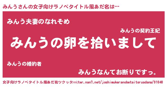 | ヘコむあだ名 | 『みんぷりん』『みんう(笑)』 |