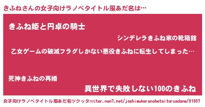 | 男性向けラノベタイトル風あだ名 | 『魔弾の王ときふね』『緋弾のキフネ』 |