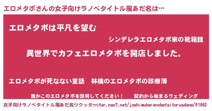 | 胡散臭い通販商品みたいなあだ名 | 『前代未聞の水素水…その名も「エロメタボ」』 |