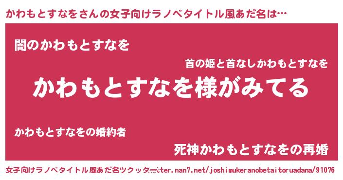 | 男性向けラノベタイトル風あだ名 | 『かわもとすなをの嫁は女の子じゃないと思った?』 |