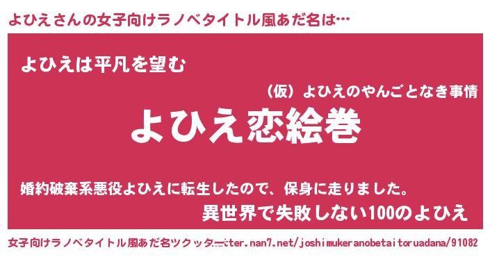 | ヘコむあだ名 | 『よひを』『よひえ(遠い目)』 |