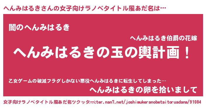 | 男性向けラノベタイトル風あだ名 | 『転生したらへんみはるきだった件』 |