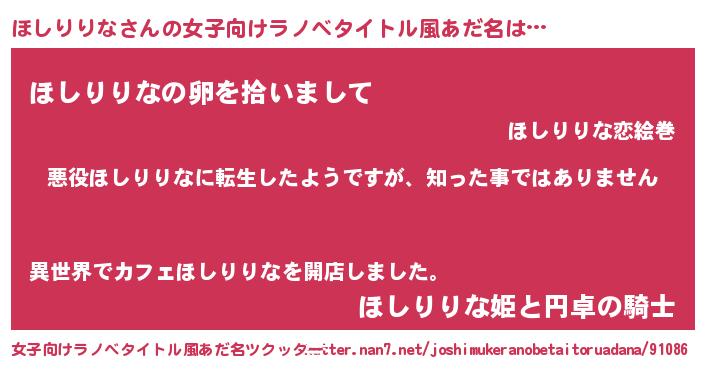 | 男性向けラノベタイトル風あだ名 | 『この素晴らしい世界にほしりりなを!』 |