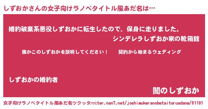 | 男性向けラノベタイトル風あだ名 | 『シズオカアートオンライン』 |