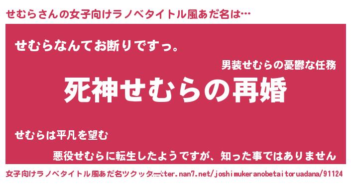 | 男性向けラノベタイトル風あだ名 | 『ノーゲーム・ノーセムラ』 |