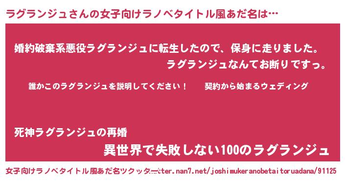 | 男性向けラノベタイトル風あだ名 | 『ラグランジュアートオンライン』 |