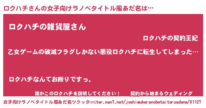 | 男性向けラノベタイトル風あだ名 | 『この素晴らしい世界にロクハチを!』 |
