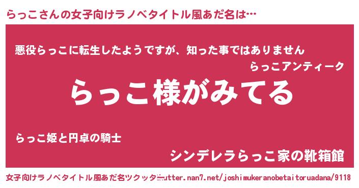 | 意味不明あだ名 | 『とにかく怪しいらっこ』『自称らっこ』 |