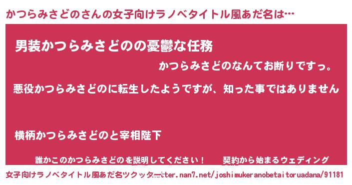 | 男性向けラノベタイトル風あだ名 | 『この素晴らしい世界にかつらみさどのを!』 |