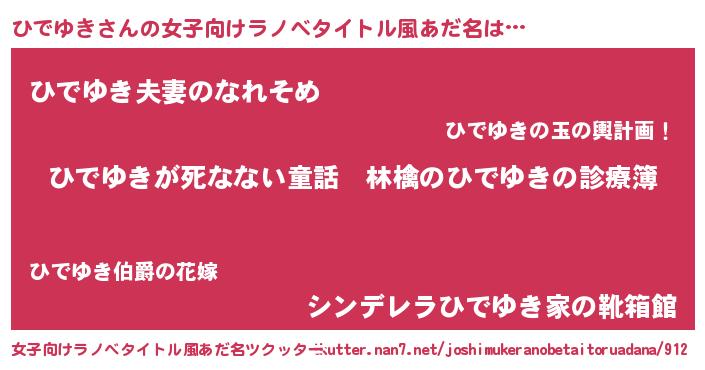 | 男性向けラノベタイトル風あだ名 | 『魔弾の王とひでゆき』『緋弾のヒデユキ』 |