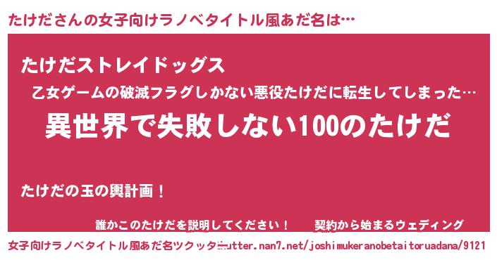 | 男性向けラノベタイトル風あだ名 | 『たけだという概念が存在しない退屈な世界 』 |