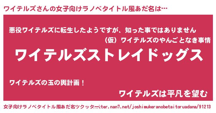 | 男性向けラノベタイトル風あだ名 | 『Re:ワイテルズから始める異世界生活』 |
