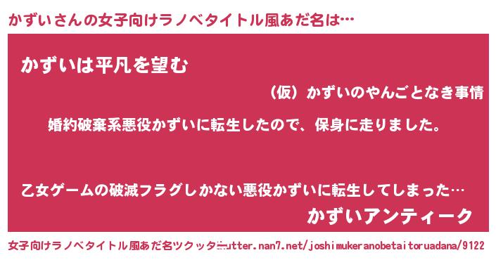 | 男性向けラノベタイトル風あだ名 | 『カズイスレイヤー』『かずいの憂鬱』 |