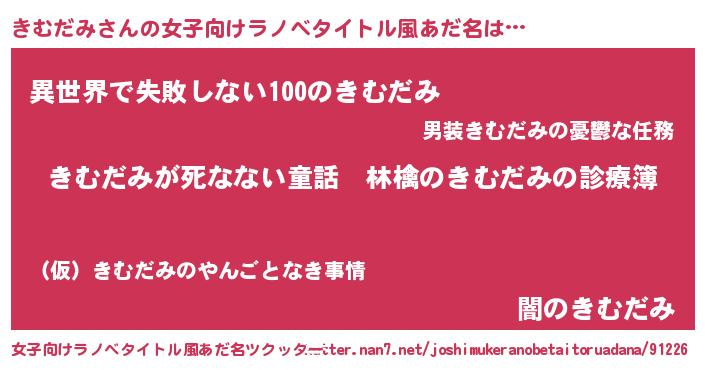 | 男性向けラノベタイトル風あだ名 | 『魔弾の王ときむだみ』『きむだみの憂鬱』 |