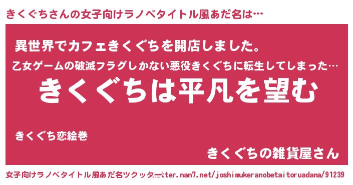 | 胡散臭い通販商品みたいなあだ名 | 『信頼と実績のサプリメント…その名も「きくぐち」』 |