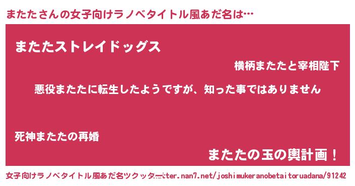 | 意味不明あだ名 | 『住所不定無職またた(13歳)』『自称またた』 |