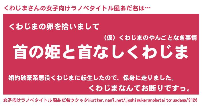| 胡散臭い通販商品みたいなあだ名 | 『信頼と実績のサプリメント…その名も「くわじま」』 |