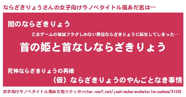 | ファンタジー風あだ名 | 『ゼナラトゥ』『ナラフェル』 |