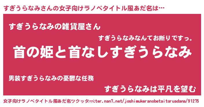 | 男性向けラノベタイトル風あだ名 | 『はたらくすぎうらなみさま!』 |