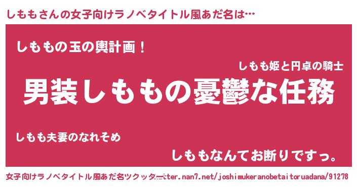 | 男性向けラノベタイトル風あだ名 | 『冴えないしももの育てかた』 |