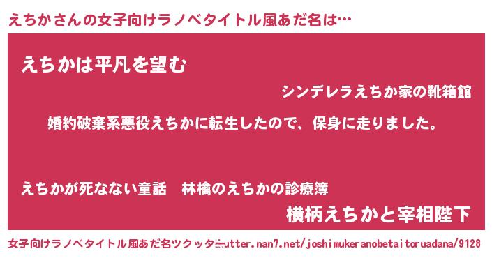 | 男性向けラノベタイトル風あだ名 | 『エチカスレイヤー』『魔弾の王とえちか』 |