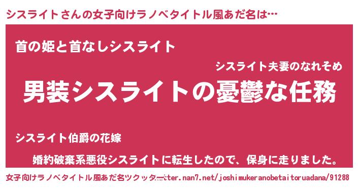 | ヒーロー風カッコイイあだ名 | 『慈愛の使者シスライト』『仮面シスダー』 |