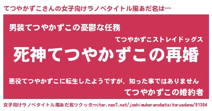 | 男性向けラノベタイトル風あだ名 | 『ノーゲーム・ノーテツヤカズコ』 |